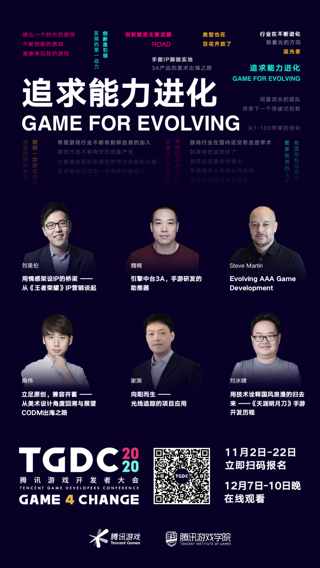 面对充满不确定性的2020年,本届TGDC以Game 4 Change为主题,旨在与从业者直面当下的变化与机遇:首先,后疫情时代,在线生活方式将长期影响用户生活与消费习惯;其次,游戏行业也在经历诸多变革,包括5G与云游戏、次世代游戏引擎与主机、全球化发行模式等,将为游戏产业带来新的机遇;第三,随着智能设备普及与全球玩家数量增长,玩家开始寻求竞技性更强、自由度更高的游戏体验。