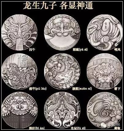 【说法二】“龙生九子”的一个说法是来自明朝李东阳的《怀麓堂集》,龙的九个儿子分别为:
