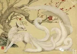 “青丘国在其北,其狐四足九尾。”《海外东经》“有青丘之国,有狐,九尾。”《大荒东经》史书中记载,九尾狐成就了“大禹”与“涂山氏”的佳缘,成为了中国古书中出现的最早的“婚姻中介”,传说中人吃了她的肉,可以不逢妖邪之气,抗拒蛊毒。九尾狐在《山海经》中出现了三次,后来成为祥瑞和子孙繁荣的象征。