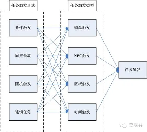 一个完整的任务包含三块内容,触发任务——执行过程——完成任务。具备了这三个基本条件,就算是个完整的任务了,那么其中多种的形式变化以及内容表现的丰富性为任务体系增添了血肉。