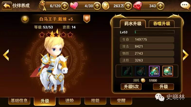 进阶 | 金币+进阶石;进阶4级后:金币+进阶石+本体伙伴 |