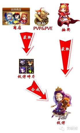 上图可以直观看到,伙伴的养成有四种方式: