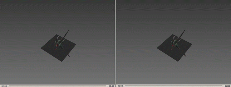 你可以从上面图中很容易的看到本来应该摆动脚却一直不动。这是因为skeletal rigging中的骨骼是分等级的,错误的累积会造成很大的影响。我们解决这种问题的方法是使用了一种我们称之为‘可适应错误率(adaptive error margins)’的技术,它意味着如果一个节点有较长的派生数,你需要把误差值降到最低,而不是为所有的节点使用同样的误差值。比如,一个末端执行器使用特定的比例,但其母单位则使用半数,那么更上一级的则使用三分之一数,诸如此类。这种自上而下的误差率降低可以最大化限制派生值发生错误的概率。