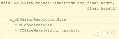 初始情况下,CCEGLViewProtocol将“设计分辨率”m_obDesignResolutionSize也设置为与 FrameSize or m_obScreenSize同等大小。
