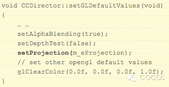 由于conf中没有配置“cocos2d.x.gl.projection”,因此projection使用了 getCString传入的默认值:"3d",m_eProjection则被赋值为kCCDirectorProjection3D。