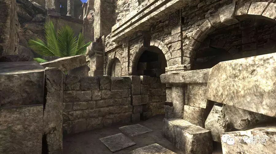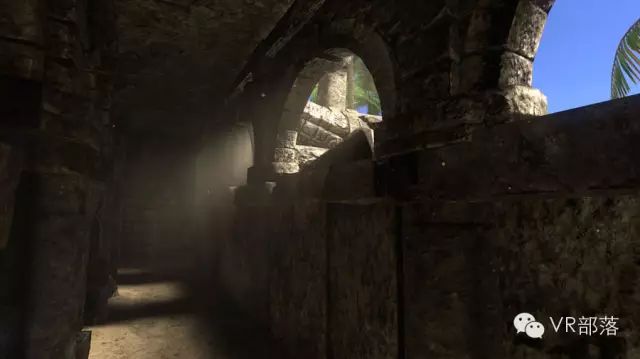 我转过拐角,发现自己在一块小空地上,在它旁边还有一张小石板凳。女解说员召唤我走过去然后坐到板凳上。我照她意思做,在我坐下来之前的第一感觉是,她也在这里。正在这时,女解说员告诉我,我需要去探索一个玛雅神殿,寻找宝藏。这时候我感觉到自己已经融入到这个场景,我的大脑完全沉浸于这个幻想的虚拟现实中,感觉很舒适,就跟在真实世界一样。 这时,跟在我旁边的Jensen递给我一个火把(现实世界里它其实是一个改装过的PS Move控制器加上Optitrack动作捕捉标志点)“一般来说你会抓住这个墙,”他说,“但我们还没有安装它。”