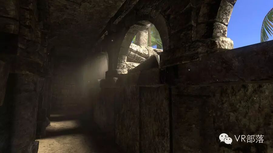 听他说完后,我站了起来,走过古殿的大门。在我面前是一条漫长的走廊,在我左边的墙上有许多裂缝和孔洞。我用火把凑过去仔细的观察了一下,发现并没有隐藏着什么秘密。我继续沿着笔直的走廊走,或者说至少我大脑认为这是直的。 当我走到走廊的末端时,Jensen打断了我的体验。“我希望你转身,我可以告诉你一些事情。”,我转过身来,他指着走廊说:“你认为你一直在一条很直的走廊上走吗?实际上它是弯曲的。” 顺带说一下重定向行走