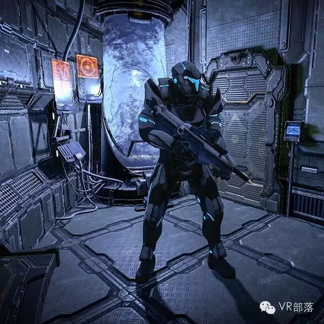 当我们往左边走的时候,出现在我们面前的是两条分岔路,一边是笔直的走廊通道,一边是露天站台。我们按James的意思走进通向露天站台大门。霎时间很多眼里发白光的球状机器人无人机出现在天空上,他们没有对我们开火但是可以确定它们要向着我们撞过来。我惊讶的发现很容易瞄准目标,甚至是坐着也很容易(我之前试过很多次,在VR里的射击者来说,这是最容易的一个方式——full Rambo)。 扫清了露天站台的无人机之后,我们回到刚刚看到的分岔路口,走向走廊那边。这时Taylor很兴奋。在James的带领下,我们与走廊的异型展开正面对抗。 “继续互相射击”James笑着说,“在这个演示里,你不可以杀死对方,但是你可以知道在Void里玩第一人称的多人合作游戏对战是什么感觉。” 我们一边前进一边向对方疯狂扫射。向右转弯,解锁一组密门之后,我们进入到冷冻室,女解说员再次出现,告诉我们要把外星人从冷冻室里解封出来,然后击昏它,并且把它带回到基地上。我向着冰封的外星人走前,感觉得到冰上透出的寒气,然后我把冰射垮了,外星人也随之解封了。 当外星人上蹿下跳试图逃走的时候,我们的枪都对着外星人扫射。最后给它致命一击,外星人马上跌倒在地上,一动不动的。我走过去用枪拍了拍外星人确认它是否还能反抗。当抬起它带回基地的时候,它就像布娃娃一样轻巧。 然后,在冷冻室突然打开了一扇门,当我们走进那扇门的时候,女解说员又出现了,大赞我们出色的完成了任务。最后我们回到白色的房间卸下游戏装备,并再一次回到我们游戏最开始的地方。 离开前我们有机会看一下the Void团队目前正打造的一个项目,虚幻竞技场4(Unreal Tournament 4)的一个港口,这款游戏为特定的媒介重新做了调整。你能够以每小时70英里的速度绕着the Void跑,也许有人会因此受伤或感到不舒服,但这看起来很有前途。
