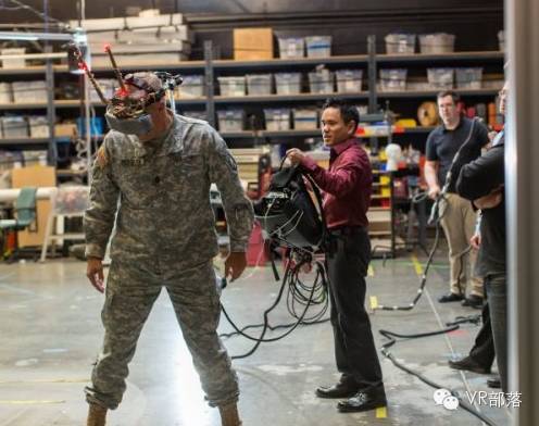 南加州大学创新技术研究所进行的VR研究。天线上是追踪用的LED。 /STEPHANIE D. KLEINMAN