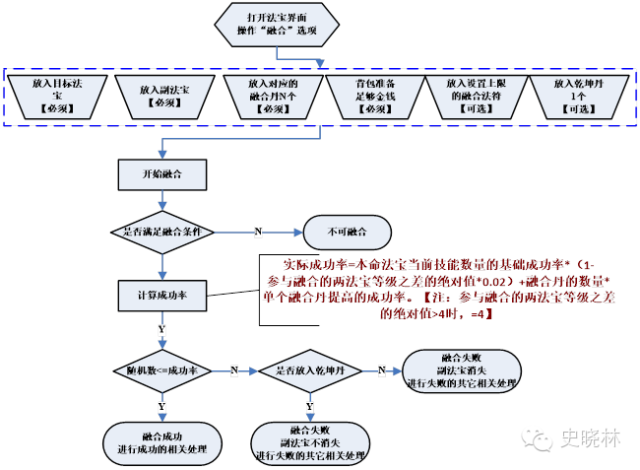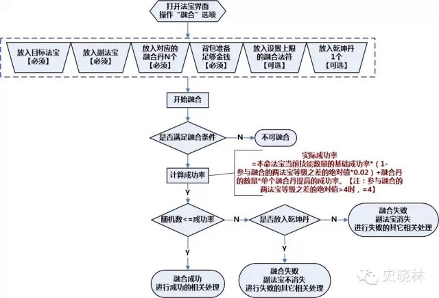 即:越高级副法宝基础成功率低、需要更多的融合法符,且本命法宝与副法宝的等级差别越大,融合就越困难。