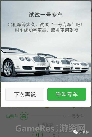快的打车app 中,在叫普通出租车的等待时间中,会弹出专车的广告。