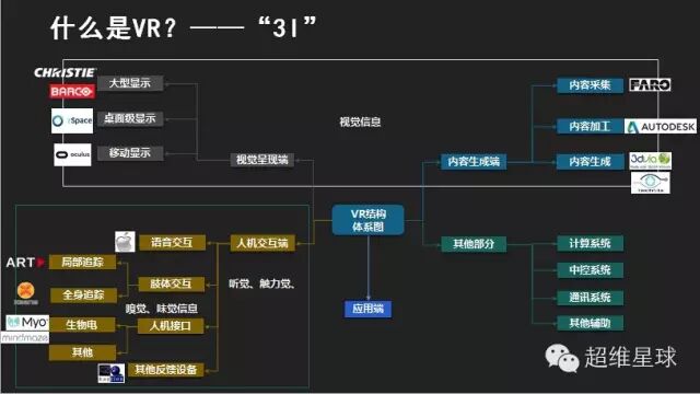 虚拟现实是一个综合技术,很难拿一条产业链或者画一个产业的生态图就能把VR的生态系统描述清楚。所以我想关于VR,可能还得回到刚才盛秘书长讲到的根本的3I特征,所以我这里对什么是VR做了一个解构。