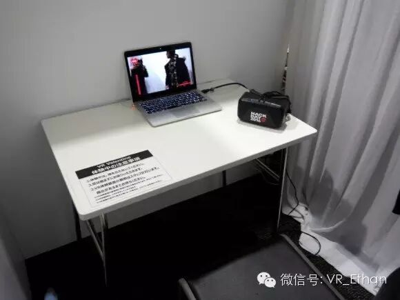 我们派出了我们的日本翻译员Seiji桑前去一探究竟。他在会场内很快就找到了正确的摊位位置,工作人员将他带到了一个用帘布围起来的小房间,那里面只摆放着一张电脑桌,还有一台电脑和我们的主角VR设备。