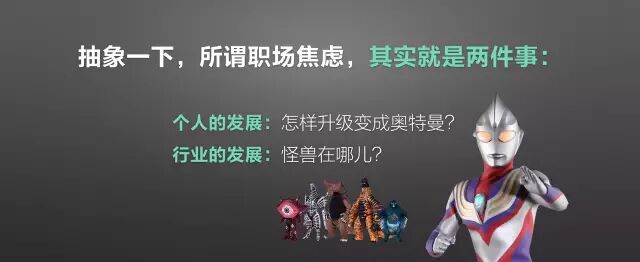 在职场,你需要考虑两件事。第一件是清楚知道个人发展,通俗点说,怎么样变成奥特曼?第二个是清楚知道行业发展,怪兽在哪儿?