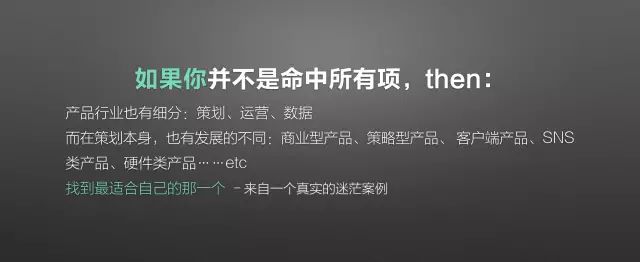所以,大家需要对自己正在从事的产品行业,有一个很清晰的认知。尤其在我们刚刚踏入职场的时候,一定找到最适合自己发展的细分市场,就像产品一样,基调对了,后续才能有更长久的发展。