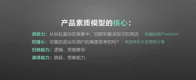 我提炼了一下产品素质模型的核心,基本总结为这四点。
