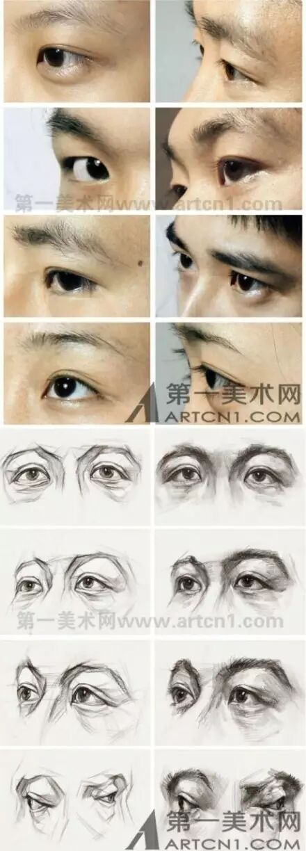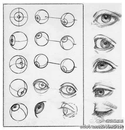 不同角度眼睛的透视关系,以及在素描中的表现方式