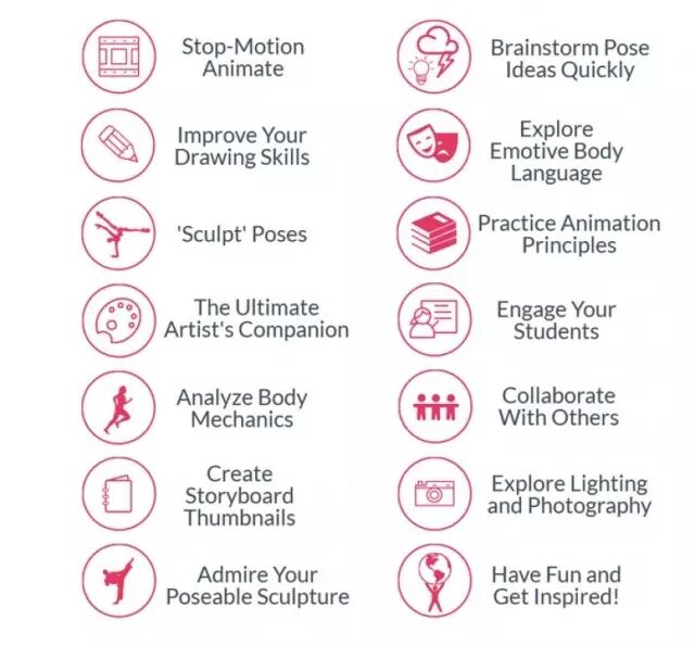 艺术家可以通过stickybones所摆出的pose参考进行创作