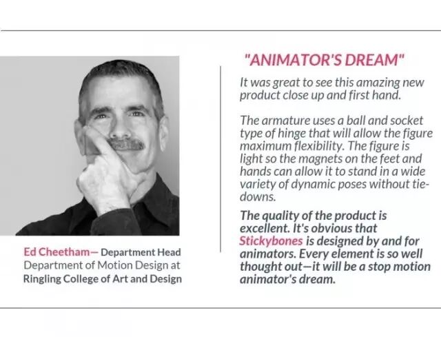 瑞格林艺术与设计学院设计系系主任ED Cheetham说这个产品实现了定格动画人的梦想!
