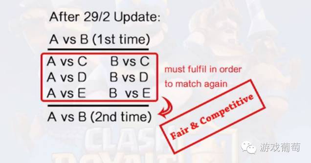 然而,这还不够,在此后Supercell再次做出调整,对战的双方,必须均完成至少三场对战之后,才有可能再度相遇。这套标准也一直沿用到现在。