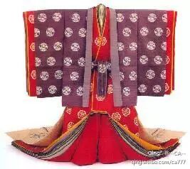 女性的正装——裳唐衣(全图) 在重叠的几层“挂”(衣字旁的)上罩上“裳”和“唐衣”,这便是高贵的女性及服务于内里(即大内)的女官们所穿的正装。