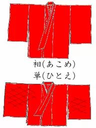 ぁこめ:与“单”形状相同,穿在上衣和下着(单)之间。