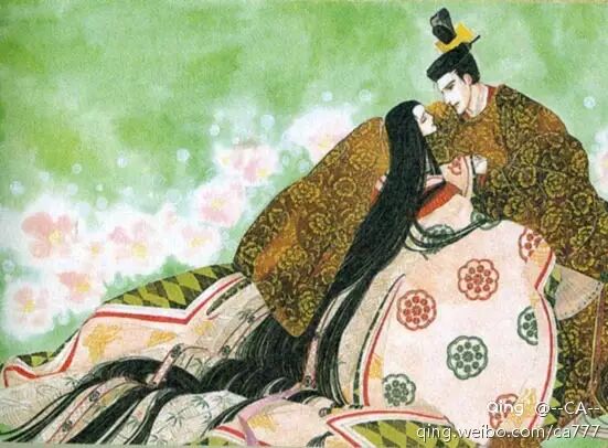 所谓“禁色” 前面提到男性的束带的颜色是根据地位而定,而女性服装除禁色不能用之外是自由的。禁色,是指无天皇敕许则不可着用的颜色。根据时代变迁禁色也在变化,基本上是赤、青、浓紫、浓绯、浓苏芳等。升晋为公卿,或是从天皇那里降下“禁色的宣旨”(此为特例)的话,就可以着用禁色了。