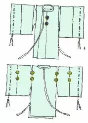 這種從鎌倉時代開始使用的簡便袍服又叫做「有襴狩衣」。如圖所示,它在通常狩衣的基礎上於裙裾處田添加了襴和蟻先。