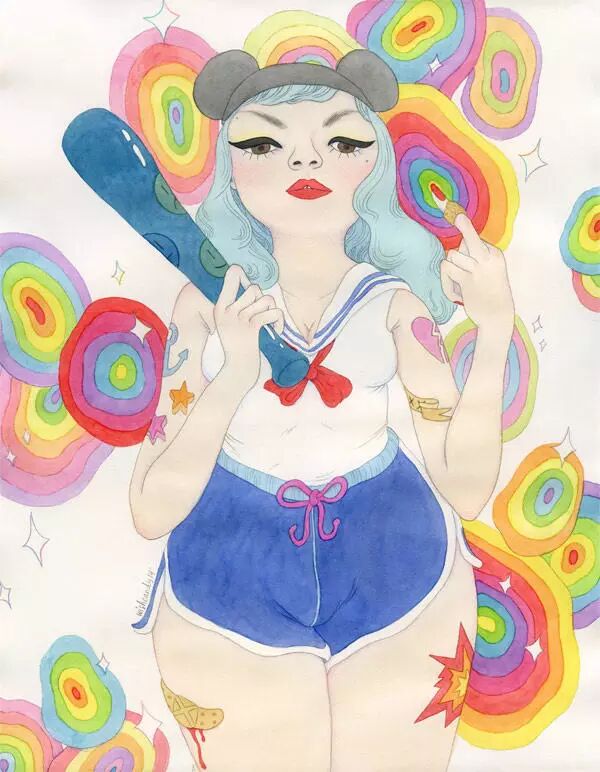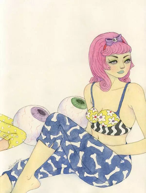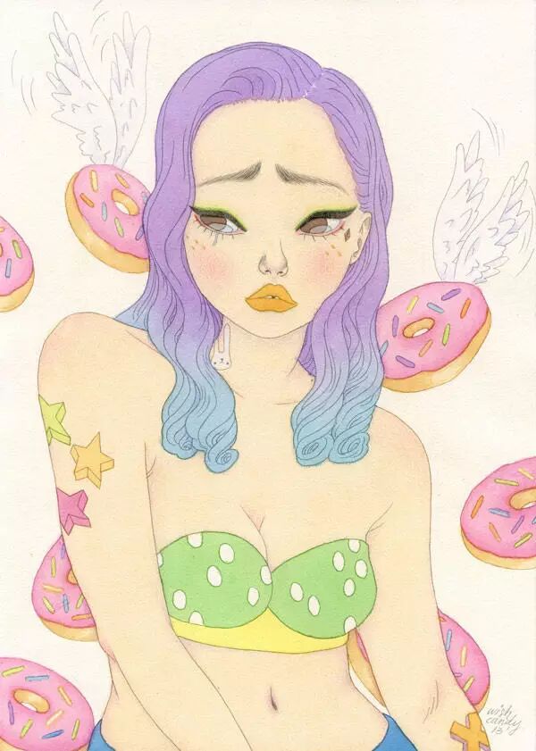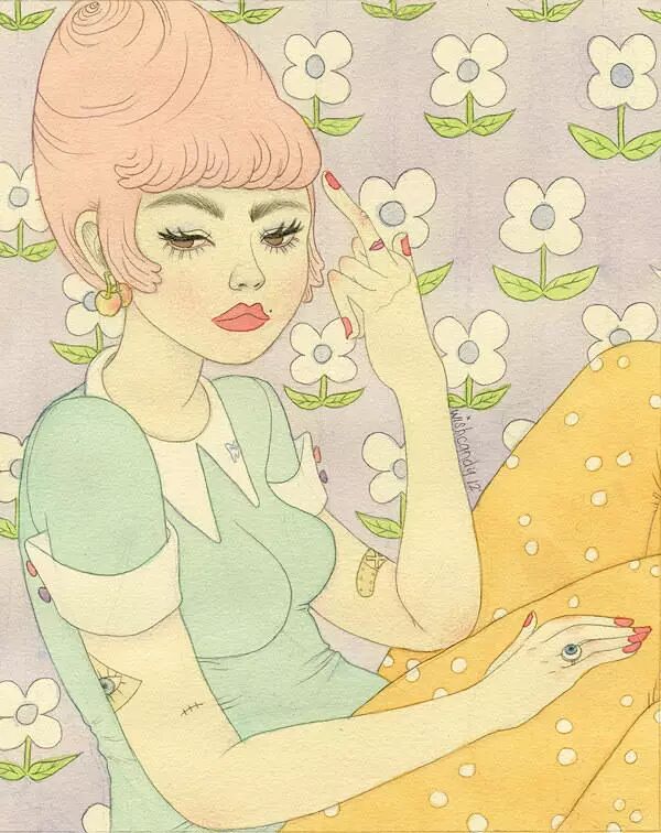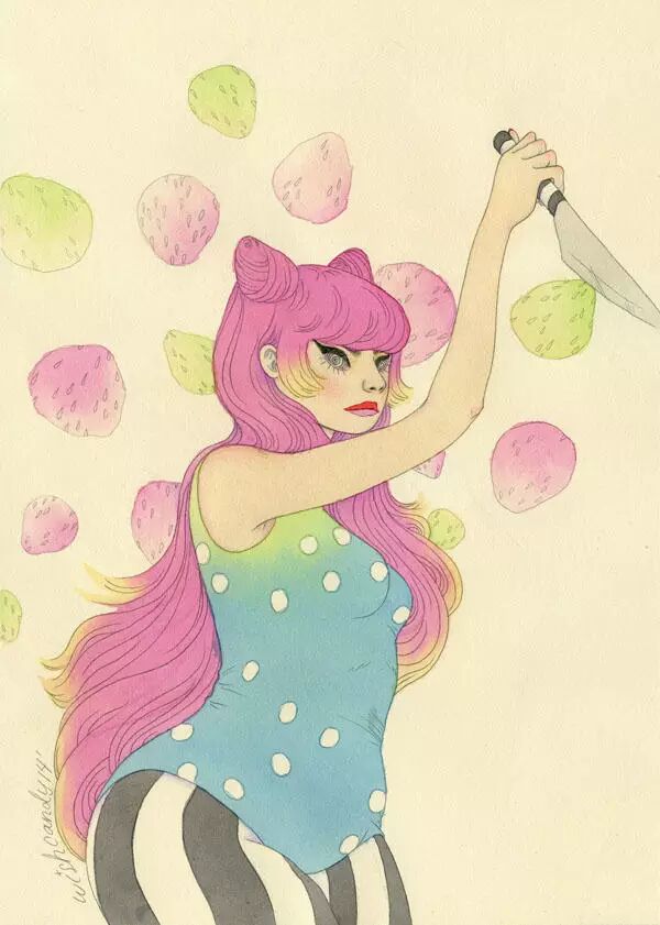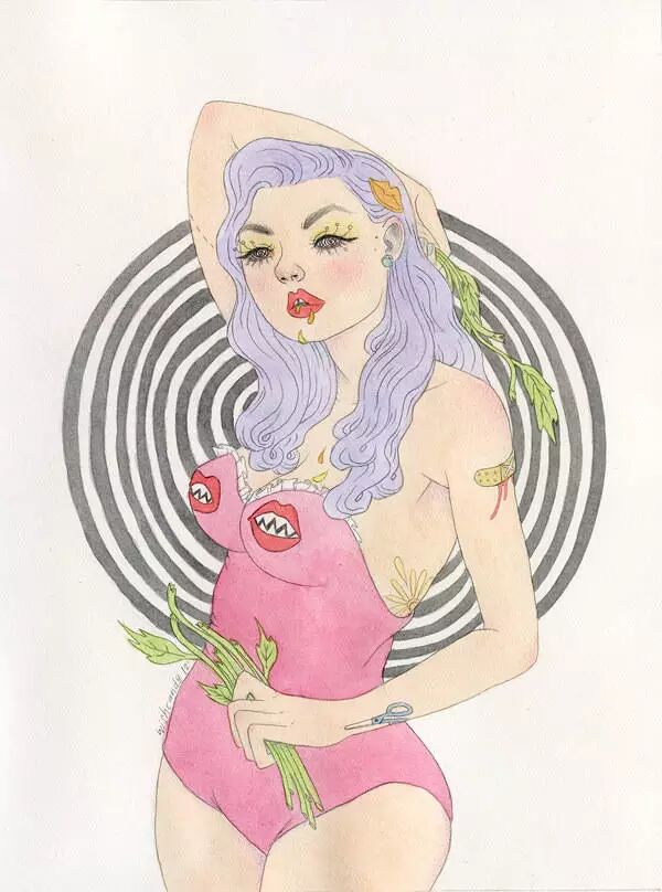 美国插画家Sashiko Yuen的插画作品,笔调清新文艺,实则是暗黑内核,裹着糖衣的毒药!