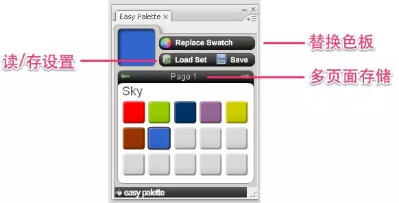 总体功能上跟 Toomboom 系列的色板很接近,但是他多调色板的功能(可能)很实用,有其是如果是团队工作的情况下,这种色板方便存储多个人物的配色或者是一个人的不同配色。当然,如果你不是在 Flash 中做设计,设个面板的意义也就一般了。