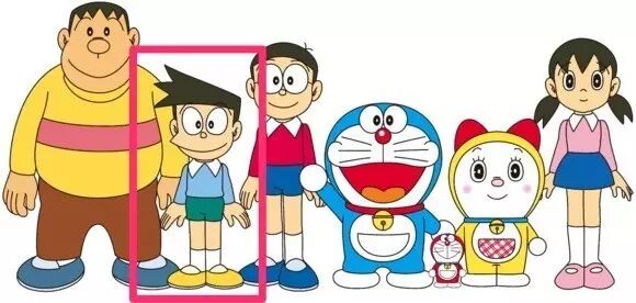 漫画中,小夫的正面总是嘴巴突出,头发也永远偏向一侧。在三维化之后,为了使角色从各个角度看起来都比较舒服且符合透视规律,小夫的嘴和头发变成了向前、向上突出,因此,三维小夫的正面与二维小夫的正面效果就有所不同了。