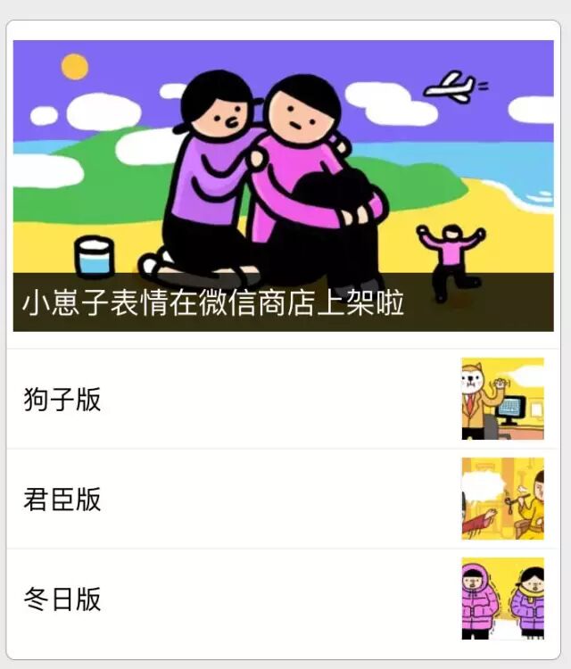 “小崽子”是表情系列中主要角色“小山”和“思子”两个名字的组合,该系列表情的发展史简直就是微信表情功能的发展史:
