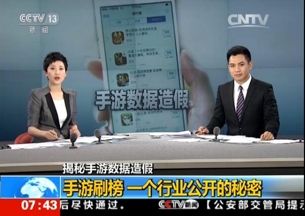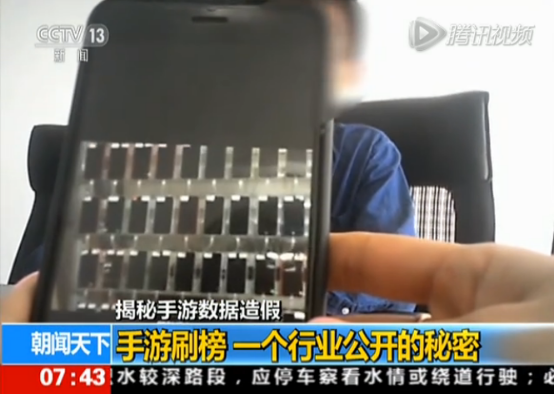央视:手游刷榜已构成产业链 开发商单日成本超2万元