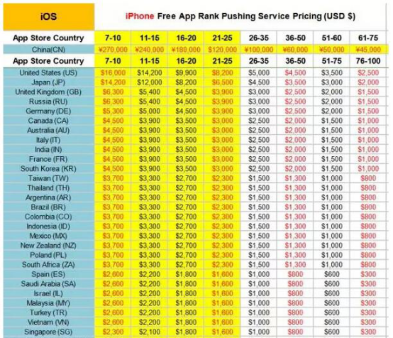 此前报道曾显示,不仅中国地区存在刷榜,在美国、日本等地区均存在此类现象。不过,以App Store iphone市场为例,中国区7-10名的刷榜价格达27万元/天,而美国区7-10名仅为10万元,日本则约7万元,中国区价格约合美国、日本区的3倍。