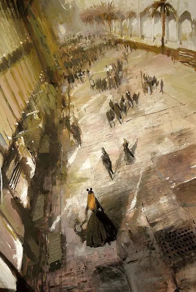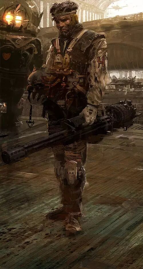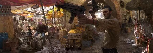 在他的作品中,你会感到一种令人窒息的霸气和热血沸腾。他的绘画风格多样,尤其擅长使用简单的块面和色彩来表现丰富逼真的光影效果。他不仅精通数种软件,在传统美术领域有很高的造诣,擅长油画和雕塑。大家可以来学习一下他的用色和整体大局的把握能力,以及高度概括细节的能力,而不是仅模仿他的笔触。