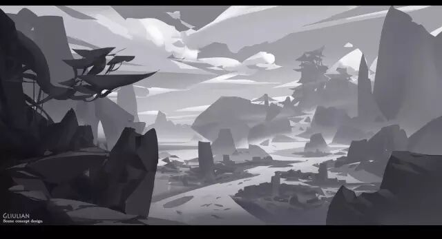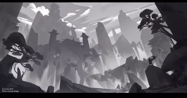 下面几张是给榴莲班小伙伴们演示的构图草稿设计,目的在于说明构图的设计,里面暗含了很多设计的方式,大家应该是能看懂一些了吧,喜欢去分析画面了就是好的开始,这些隐藏画面背后的平面构成关系,需要我们不断的去发现理解。因为是课堂演示每张需要控制在30分钟左右,这几张分别从不同的视角去诠释的,构图稿并不需要画的很细致,更多是想法的快速表达,只是把它独立出来作为一个重要的绘画过程,这样就不会忽视掉构图了,之前的文章也有说到,构图做好了,你的画面基本就成功一半了。