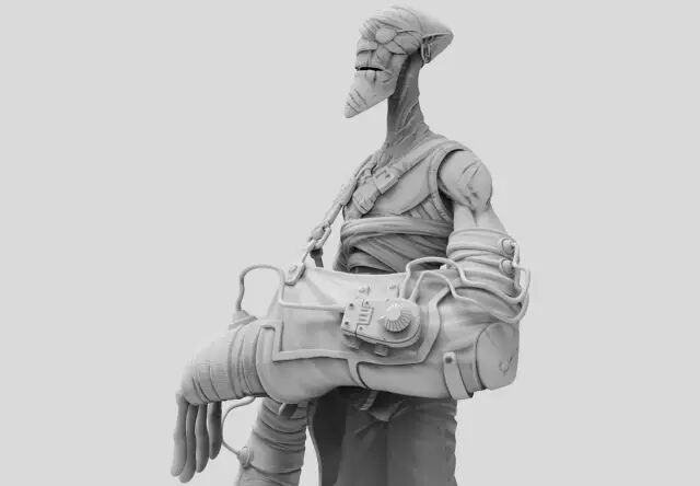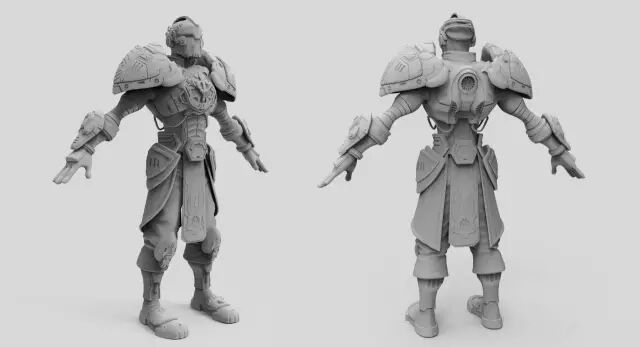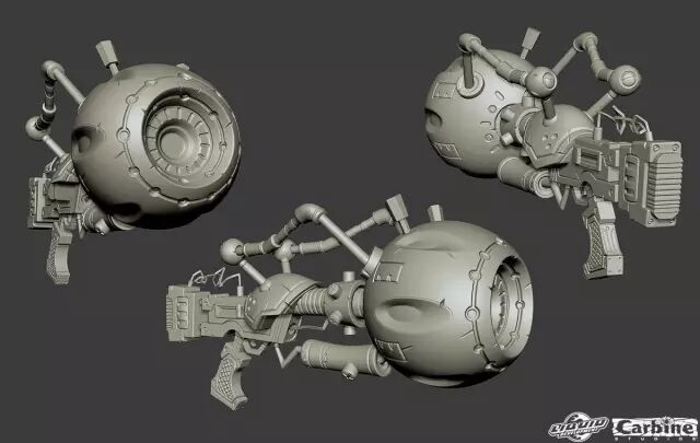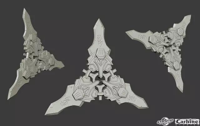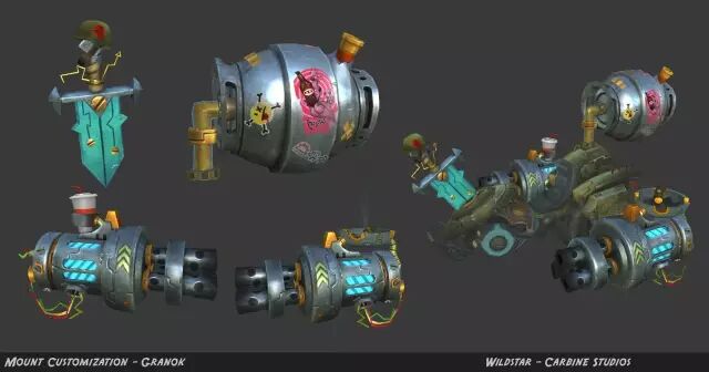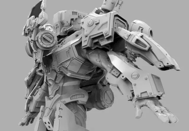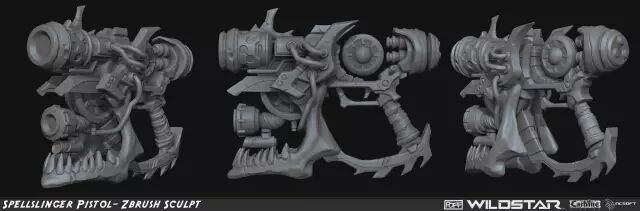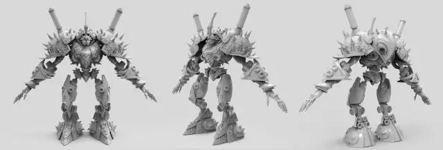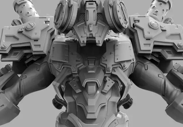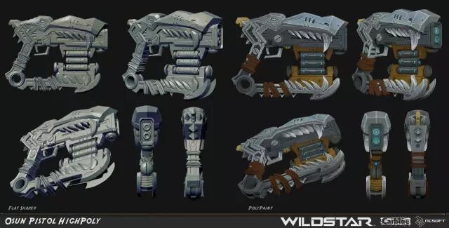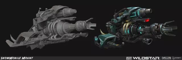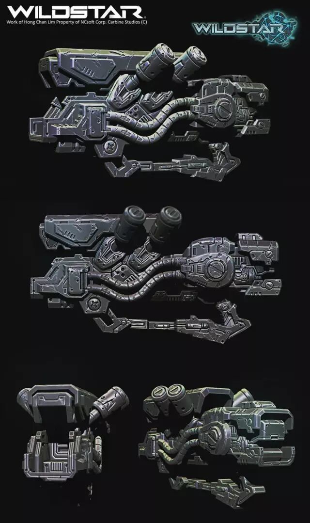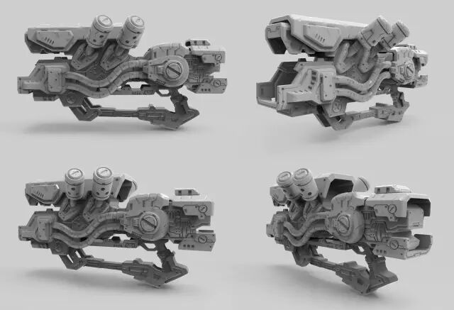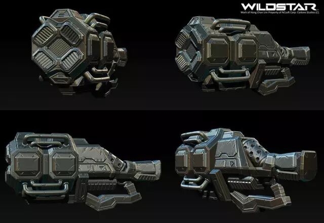 厚重的机械装甲呈现出一种美式文化特有的科幻美感。每个火炮的建模都是独一无二的,你可以看到上面又不少地方有折损的痕迹,这种由金属折旧产生出来的真实感是美式科幻中的精髓。上色后就变成一把非常有金属质感的重型武器了。