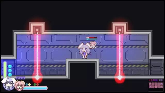 从流程设计来看,《Rabi-ribi》是平台跳跃游戏。恶魔城like的游戏需要大量的关卡场景以及收集要素的设计。在本游戏里,水下,计算机、异次元场景等等不同的场景使用不同的要素来为难玩家,可以在较为冗长的游戏流程中获得不一样的体验。其实这些都是套路,但场景之多,风格之迥异,游戏能做好其实是不容易的。