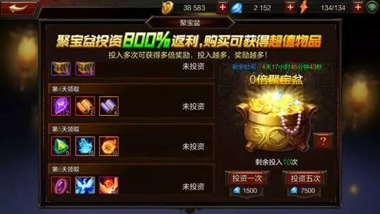 也是来源于《全民无双》的,玩家在活动期间投资一定钻石,即可在后续15日登陆中,领取到大量的消耗品奖励。投资的钻石倍数越高,后续领取的奖励也是同样翻倍,最多可翻十倍。对于不同需求的玩家,可自由选择。