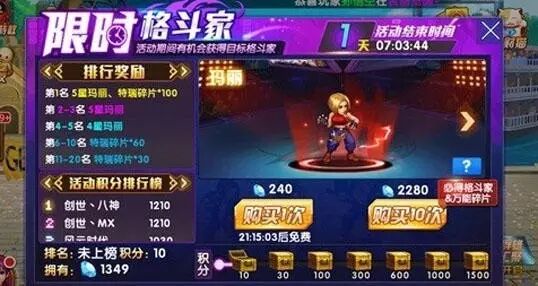 《拳皇98》每次抽取必得格斗家和万能碎片,累计抽取不同次数获得额外的碎片奖励