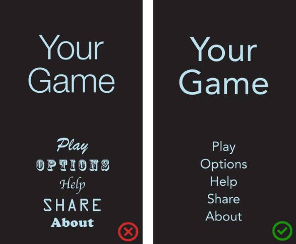 几种不同的字体在一个APP中混用,会让你的APP显得散漫而马虎。减少屏幕上字体类型的数量,可以强化排版的效果。当你设计APP的时候,尽量试图通过控制同一字体的字重、样式、尺寸和色彩来营造不同的布局体验,而非换不同的字体。