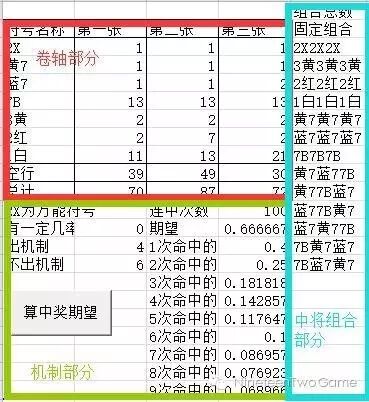 像这种类似的还可以是:当摇到某个符号后除这个符号外,其他符号重置,并累计摇奖奖励作为最终的奖励结果(此时将中将组合分类,并将不同类别分开计算);当我摇到特定组合后,出现奖金池机制,玩家可在奖金池中获得奖励(此时只需将奖金池单独拿出计算,并将其的期望收益赋予特定组合即可)等等。