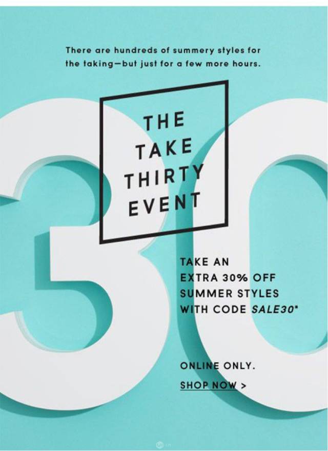 该设计把重点放在“30”上,通过使用规模和深度,来突出它。让“30”放大再放大,以至于撑满整个页面。 ▼
