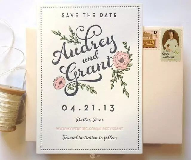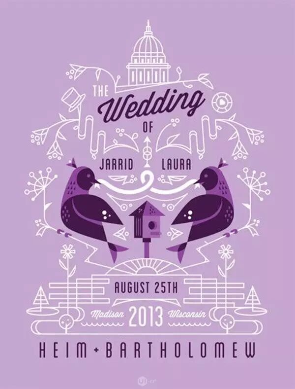 例如,这场婚礼邀请卡使用高度的对称性,但它不是完美的镜像。相反,设计师微微调整插图,以微妙的不同保持设计整体的对称平衡。▼
