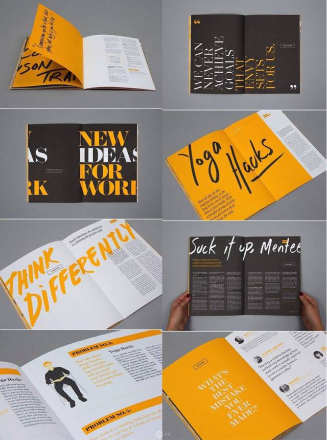 这些杂志是由本杰明设计的,每个排版布局都有着其相对应的目的。