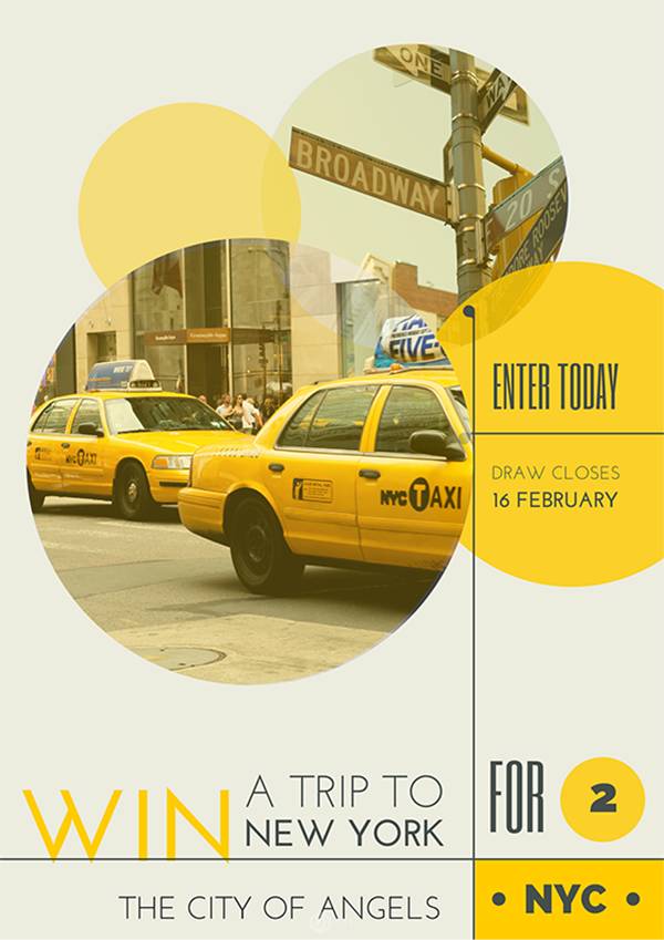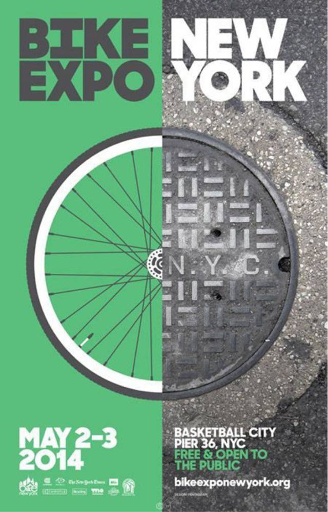 例如,看看这张纽约世博会自行车的海报,它的设计就具有强烈的对比度。因为他的整体是一分为二的,一面是绿色的扁平风,一面是灰色的拟物风,以确保两个面都是引人注目的,谁也无法抢了谁的风头。想象一下,如果“NEW YORK”和 “BIKE EXPO”是一种风格,一个色系的话,对比度将大大降低,标题也将不再突出。