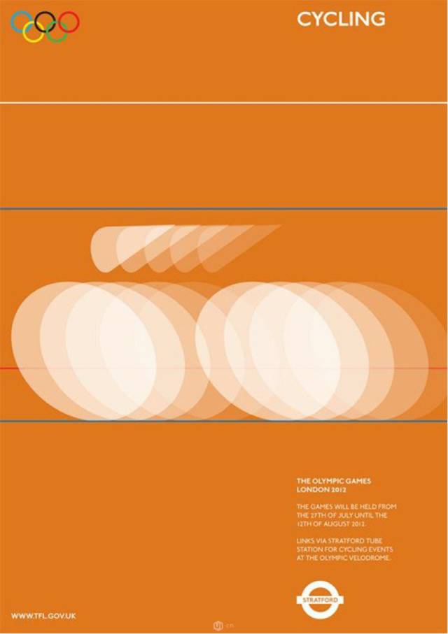 同样,看看这个由克拉克艾伦设计的关于2012届奥运会的海报。通过简单的不透明的图层慢慢叠加从而变得复杂而浑浊,最终形成了强烈的速度感和运动感。