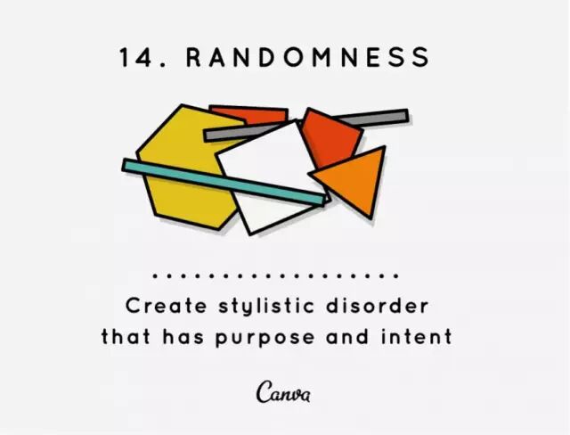 这个设计虽然看起来是随机的,但如果你仔细分析它的各个元素,你会注意到设计的某些部分并不是无规律可循的(如左下角的蓝色形状和旁边的绿色尖角形状是不是相类似)。