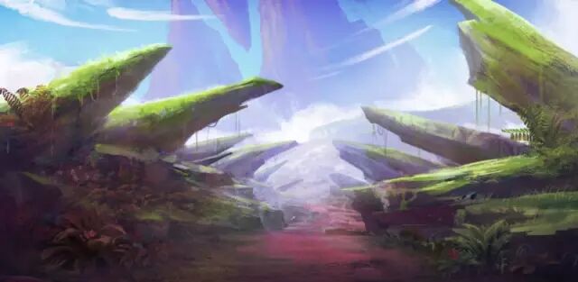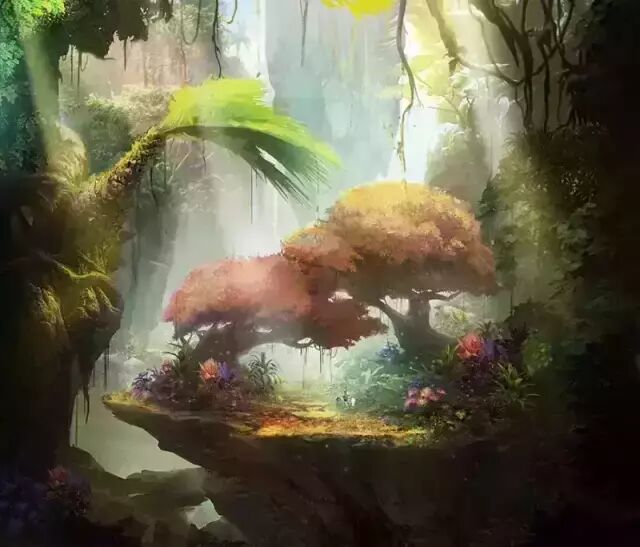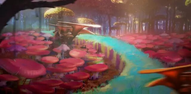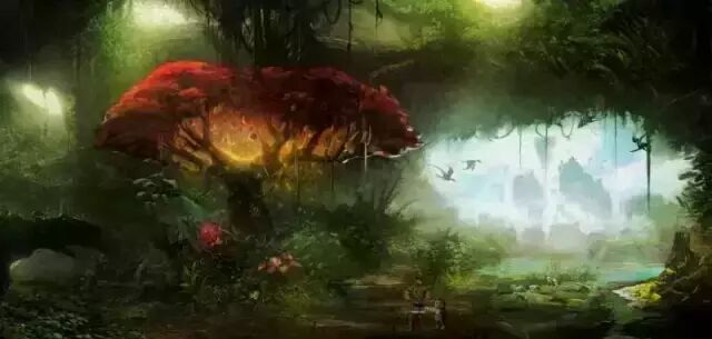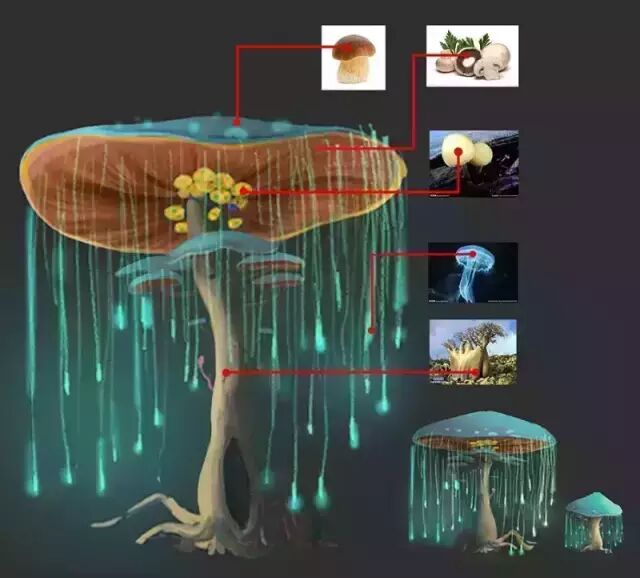 绿松石质感的根茎以及巨大菌子组成的岩兰谷地