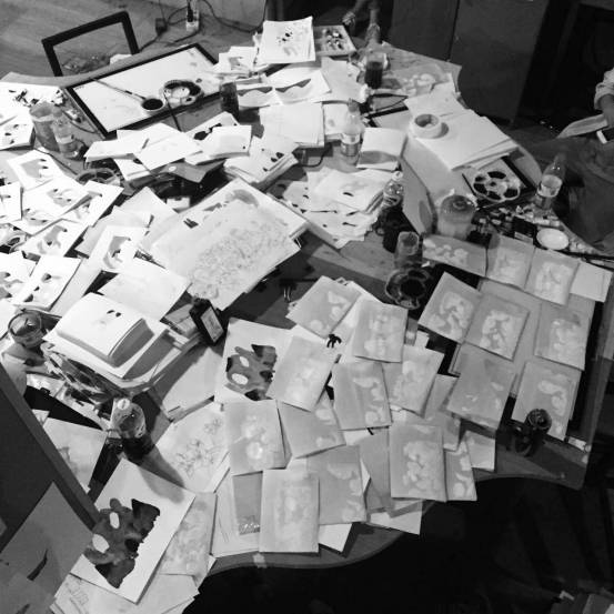 我们用软件画出动画然后再逐帧打印,再利用透台上色,然后扫描进电脑,再用PS抠像合成......(作死)最后收拾工作室的时候摸着整整两大箱的稿子,我们拿出打火机.......开玩笑,当然不舍得烧。